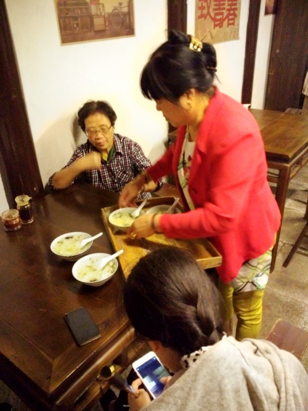 家人们上了岁数胃口都不咋地,原本打算在酒店内的郑家小厨品尝宁波风味的菜肴,只能作罢。夜宵时段去雨巷馄饨来一碗桂花汤圆和葱花小馄饨,10元一碗,贵是贵了,但品的是一种儿时的回忆。吃完夜宵回到客房,打更声隐隐约约地传来,今夜伴我一起入梦!