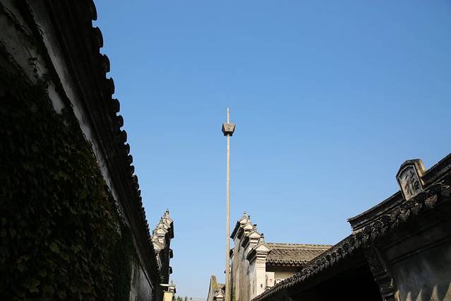 郑氏十七房有宁波地区独树一帜的“三宝”:1、旗杆最多、最高2、三年不下雨,河水不干涸3、马头墙最多,台风吹不倒。追随着郑氏先人的脚步,徘徊在悠长且寂静的巷子里,举目而望皆是灰墙黛瓦、层层叠叠的马头墙和波光粼粼的佛迹湖。