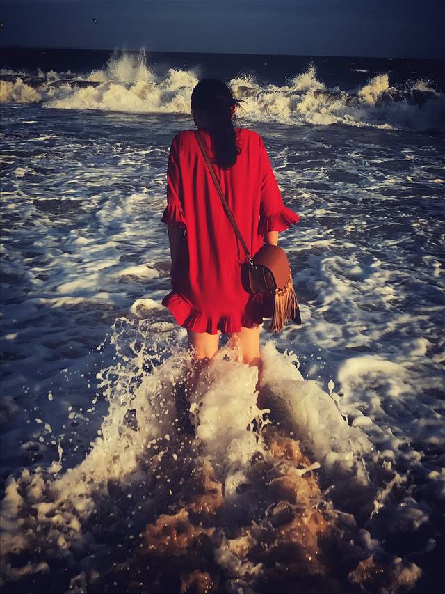 红色裙裙和大海很配💃