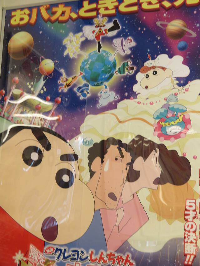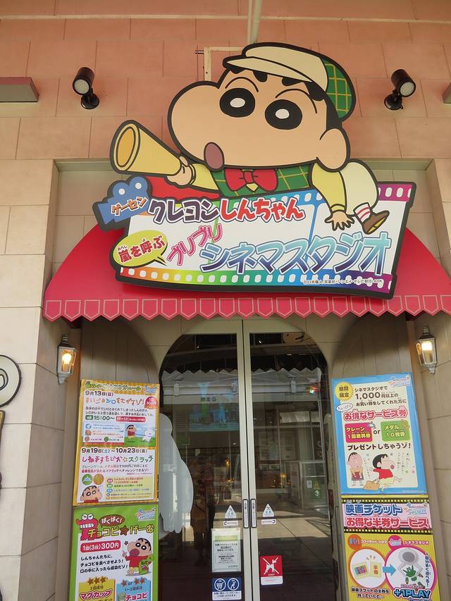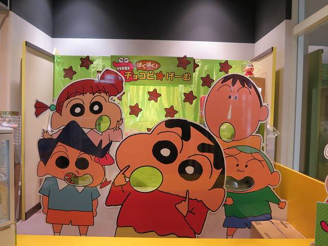 這是個購物中心,3樓有一間以蠟筆小新為主題但是基本上是玩各種遊戲的地方。我對於玩這些遊戲沒什麼興趣,但是有很多蠟筆小新對了塑像及海報可以拍照,還有歷年蠟筆小新電影的海報。所以還是拍了不少。