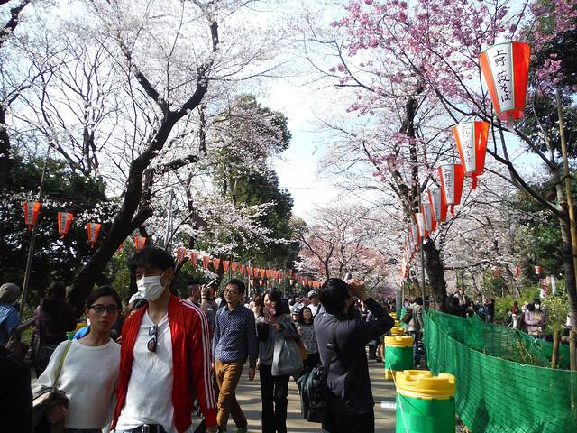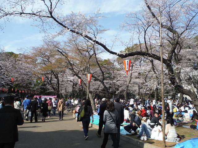 上野公园的游客也很多。反正到了樱花季,大城市樱花盛开的地方人都很多。如果你晚上看新闻就知道,新闻都会一直播放什么地方的樱花开了,想要不知道都很难。相形之下上野公园的空地叫狭小,更不适合野餐了!