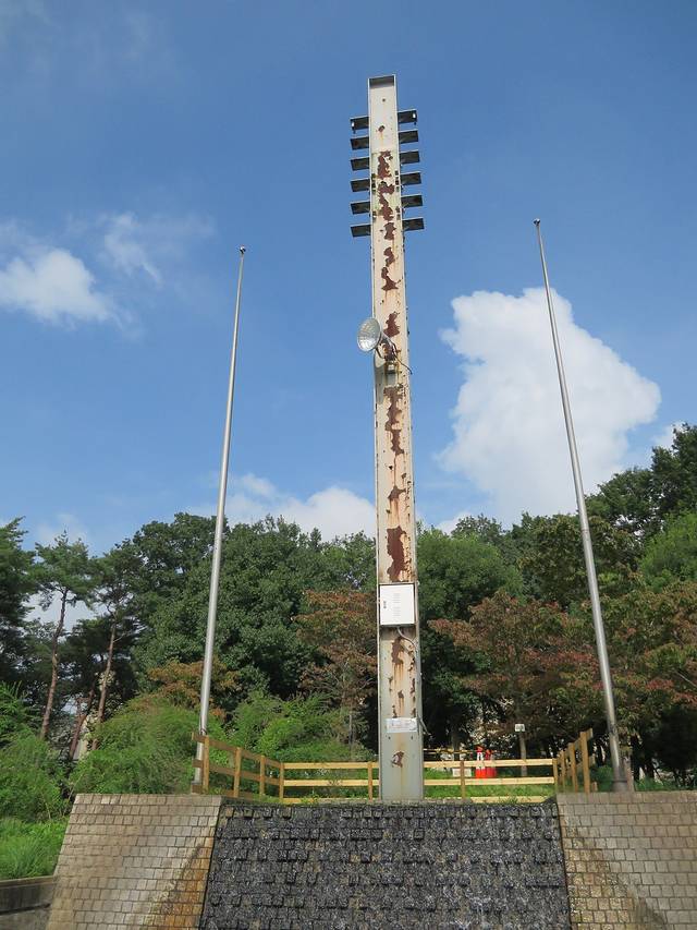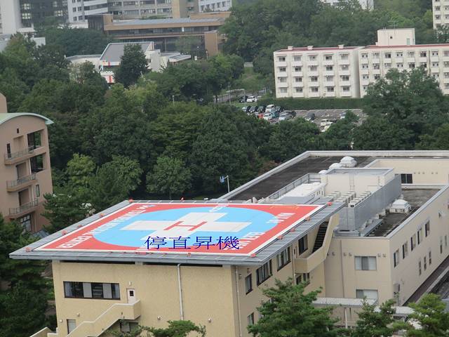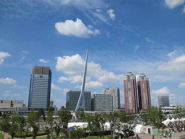 第一站先騎到最遠的松見公園。公園是免費參觀的,但是建議你花$100日元買一張門票可以搭乘電梯到展望台上看看這個城市。這是一個科技城,旁邊一幢大樓不曉得是什麼樣的研究機構?樓雖然不高但屋頂上卻可以停直升機。