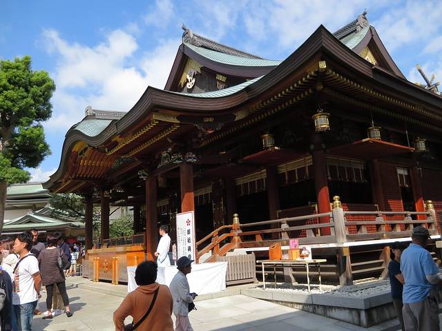走就走著看見很多的遊客往這個方向走,跟著過來溱個熱鬧!原來這裡有兩個神社一個是稻荷神社一個是根津神社正在辦廟會,除了許多攤販外還有表演。