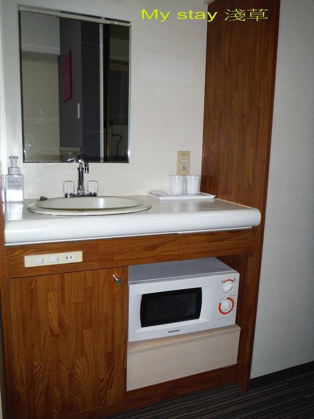 搭乘大江户线从A7出口,出来后过桥(过隅田川)直走就会看到这一间饭店。最近饭店其实还不错,除了基本的配备为还有微波炉,不过我只住两个晚上所以并没有使用到。而且很靠近东京晴空塔,晚上可以出来看看夜景。