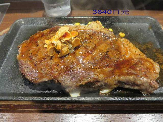 看起來好大一塊,我還擔心自己會吃不完 ! 感覺上大約等了十多分鐘,終於烤好端上來!我的擔心是多餘的。畢竟人的潛力是無窮的,十多分鐘就吃完了真的非常好吃!這間牛排也是連鎖店,現在在日本展店超過五十家了,以後到日本又有許多地方可以去吃牛排了!