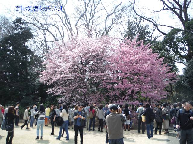游客太多了实在受不了,我决定往人少的地方走,没有樱花的地方就没有游客!风景真的也是蛮好的!准备要出去了又经过赏櫻人群集散地,真佩服这些人,有这么好看吗?尤其是当一阵风吹来樱花飘落时,所有的日本人都发出惊叹声,彷彿都是机器人!