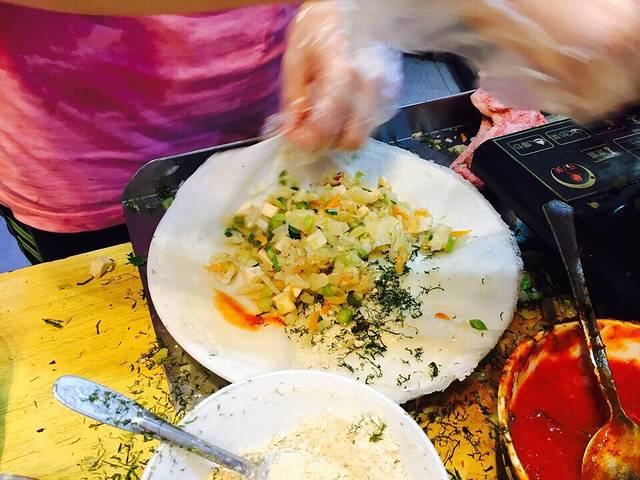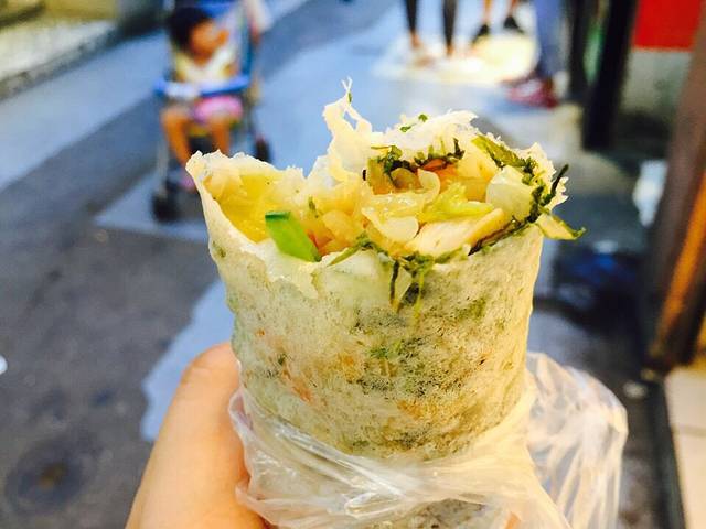 中山路步行街一条小巷的一侧卖的卷饼 便宜好吃