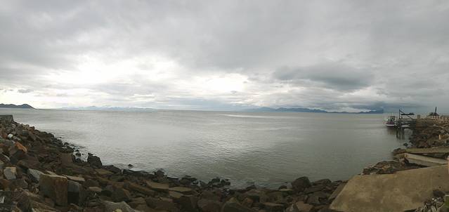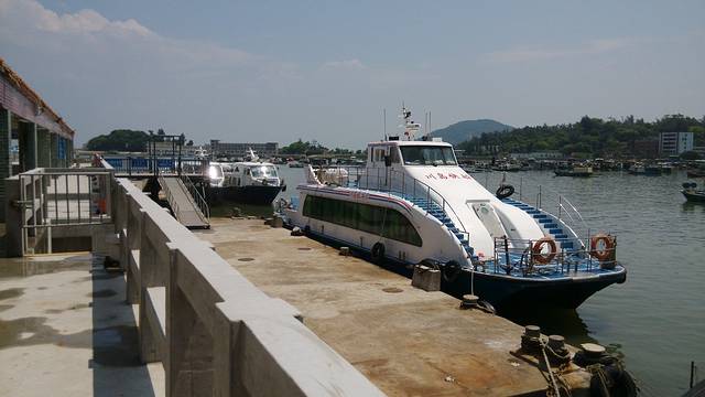 一般来说从出发点到山咀港大概需要差不多3个小时吧,主要是因为我们中途还在休息站休息了一下。。。到了山咀港,客运航班早就已经下班了,本来想在附近找个旅店过一夜就好了,可是,你会发现这里真的是可以用荒芜来形容!除了个港口,几乎就只有来的那段路上有人家的农家菜的,旅店我们是有找到一家,可是这条件差到连可以啥都不计较,经常出去旅游的大男生都觉得不可接受,我们女生没去看,听说厕所都是黑的,冲凉房的门都关不上!考虑到我们这还有两个女孩子,所以安全起见,还是赶紧掉头,到最近的广海镇去找个酒店过夜好了~~
