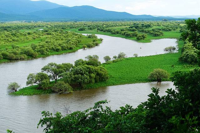 乌苏里江流经饶河县一百二十八公里。美丽而清幽的乌苏里江,是世界上仅有的未被工业污染的几条河流之一。