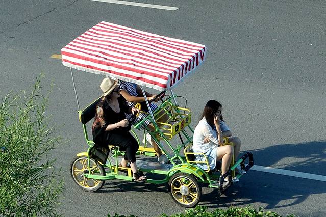沿江公园很大,走累了可以租脚踏车,沿江边公路骑行