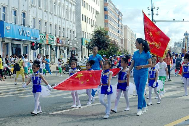 后来才知道这是当地一个幼儿园运动会的开幕式