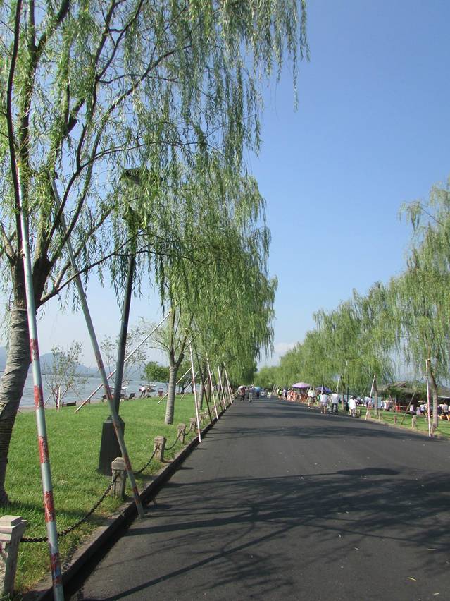 一段长长的两旁载满柳树的湖中路,人家都是骑着自行车愉快的从我们身边经过,我们呢,一路蹦哒着小短腿,硬是走完了这条道。