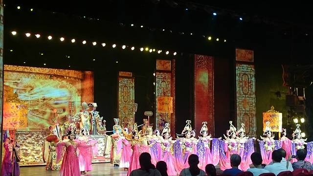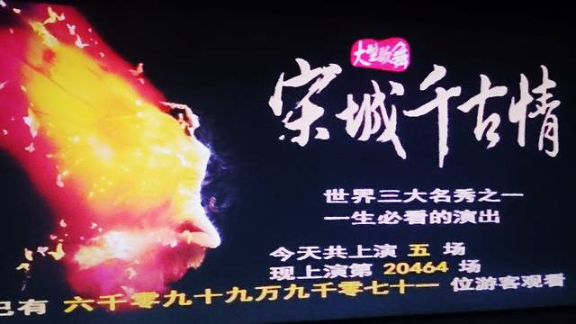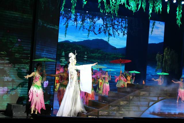 还没有任何计划要去哪儿浪,妹纸的同学来了,直接打的拉我们到杭州的宋城游乐园,门票好像是300元一张,包含观看宋城千古情的演出门票。重头戏应该就是这个宋城千古情吧,依稀记得好像40分钟这样,分为良渚之光、高宗大寿、岳飞战死、梁祝化蝶、水漫金山五个场景。看下来确实震撼,不亏为“世界三大名秀”之一。