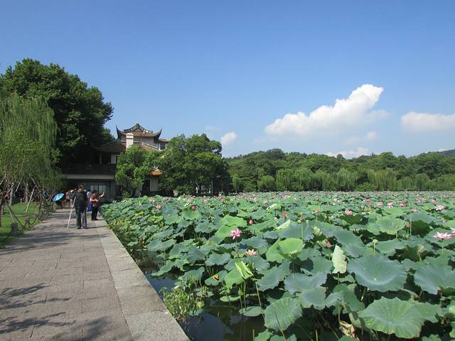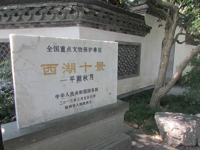 走过白堤,就到了西湖十景的“平湖秋月”了,据说是用来赏月的,去的时候太阳倒是耀眼得很,也没有看出什么来。