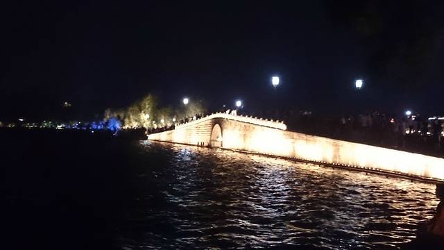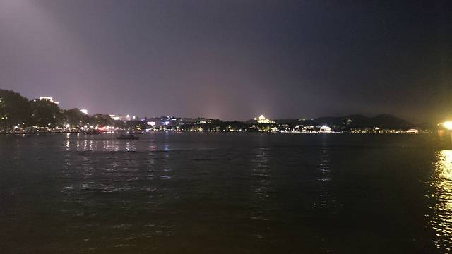 吃完饭,瞎逛到了音乐喷泉这边,人忒多了,就在外围晃了晃,看了看西湖夜景。