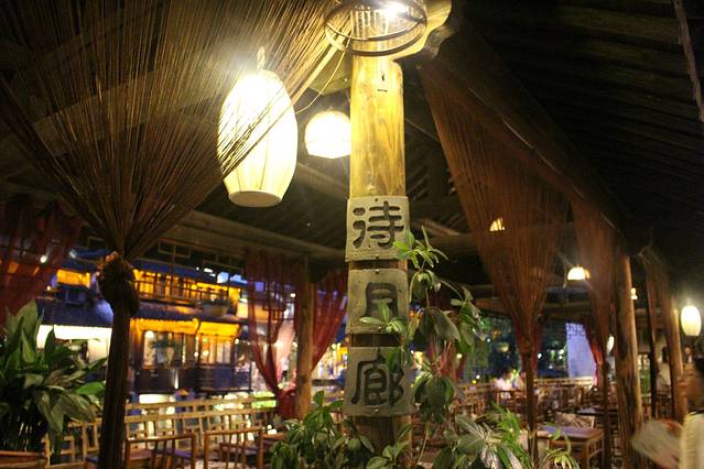 傍晚,我们便出门觅食了,住在西栅的好处这个时候就体现出来了,凭住宿单可在西栅景区内免费搭乘游览车,门票也不受当天的限制,第二天可以继续在西栅里面浪荡~按照给的地图,上面明确标明了,吃的地方,住的地方,以及所有的景点,有些小吃还是挺不错的。晚上的西栅依然熙熙攘攘,只是很多地方在夜色的熏染下,都带些许神秘的色彩,更有甚者还有一丝恐怖的气息。西栅的夜景确实美,灯火宣明,吸引着人们流连忘返。