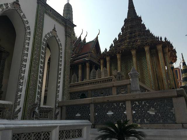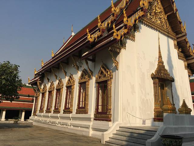 大皇宫是不能穿无袖上衣,短裤,拖鞋,真的不小心忘记穿了它的门口是有那种围裙卖的,我觉得很漂亮,我穿了长裙还是买了条哈哈。还有,玉佛寺里面是不允许拍照的,要脱鞋才能进入。