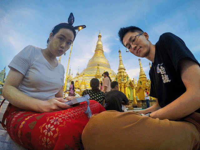 这是爆卡前的最后一张,在宝迦雅僧院偶遇拍婚纱照的缅甸小两口。
