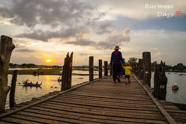 乌本桥上的日落就这样变成了曼德勒的一张名片。