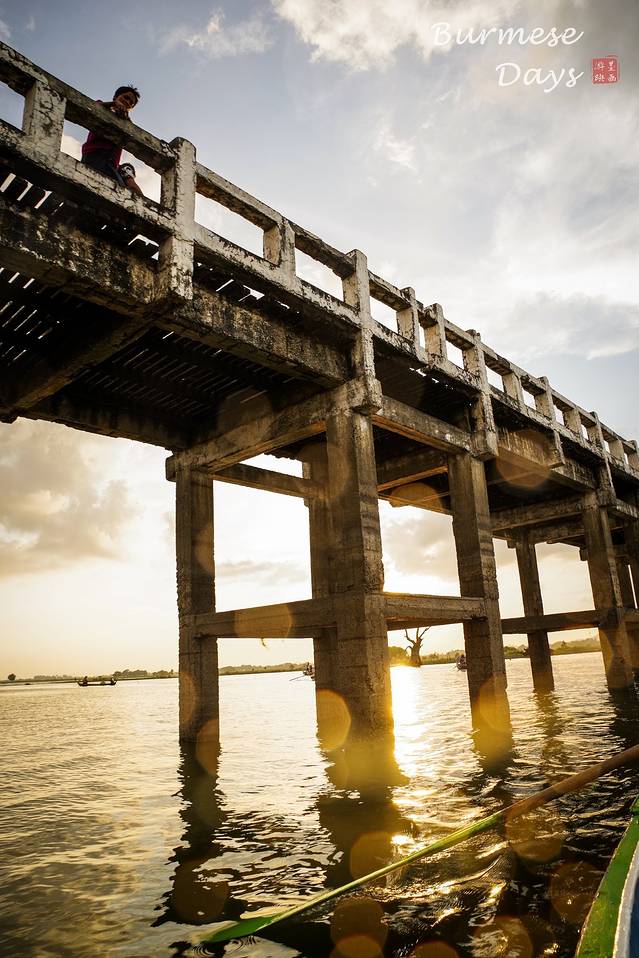 这上面的柚木都是从茵瓦古城皇宫拆下来的,立在这里成了最长的柚木桥,现在年头久了,有些柚木也就用水泥墩子换掉了。