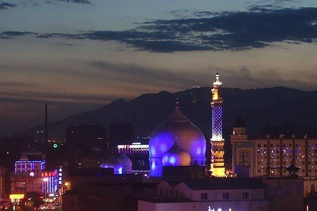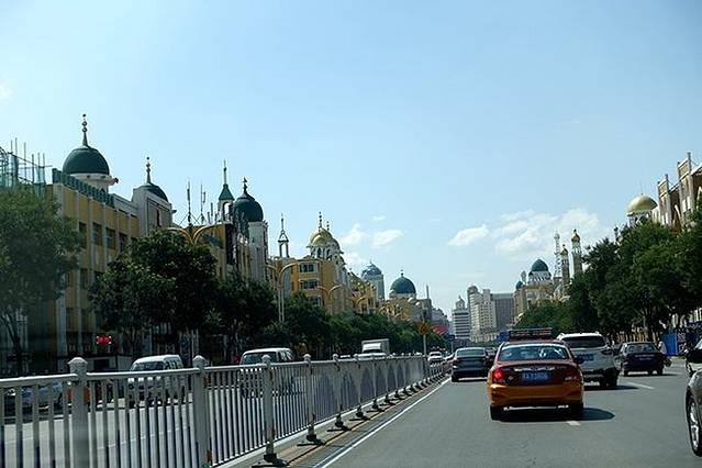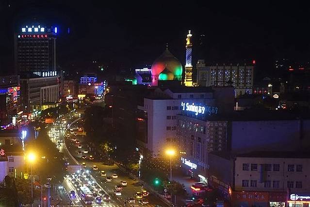 我们住的阳光岛商务酒店离伊斯兰风情街很近,这是在酒店房间里拍的街景。