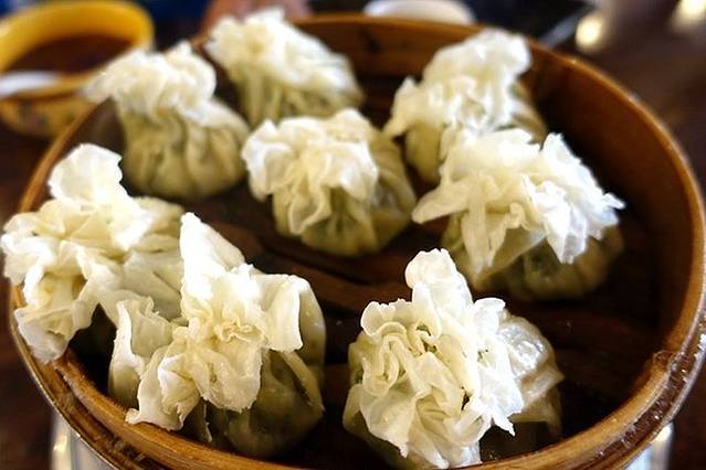 呼市人一般是用烧麦当早点的,还要搭配上砖茶解腻。烧麦是论两卖的,不是整个烧麦的重量,而是烧麦皮的重量。这就是一两,有8个烧麦,羊肉馅的和素馅的都好吃。