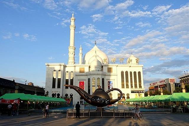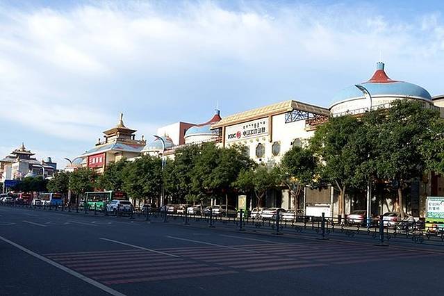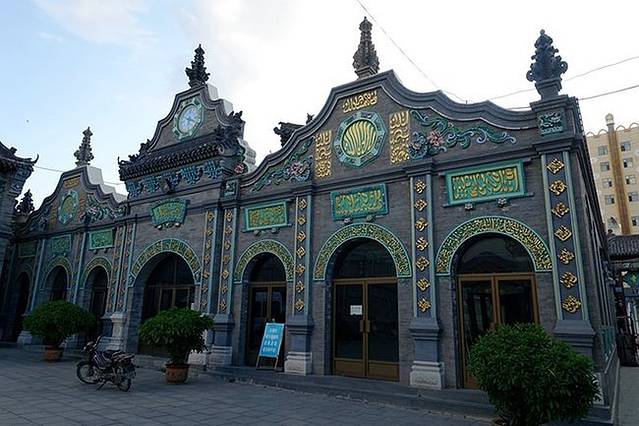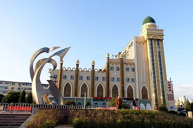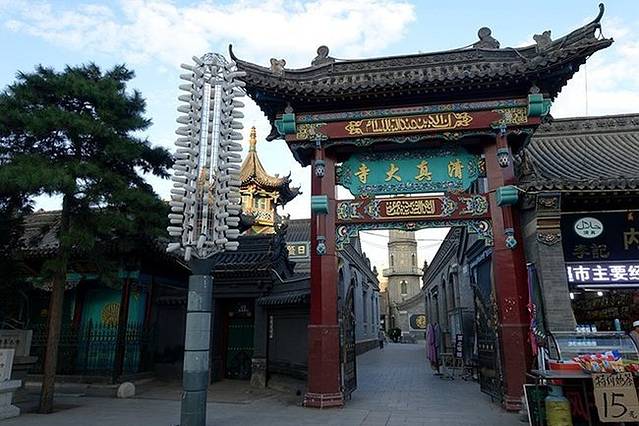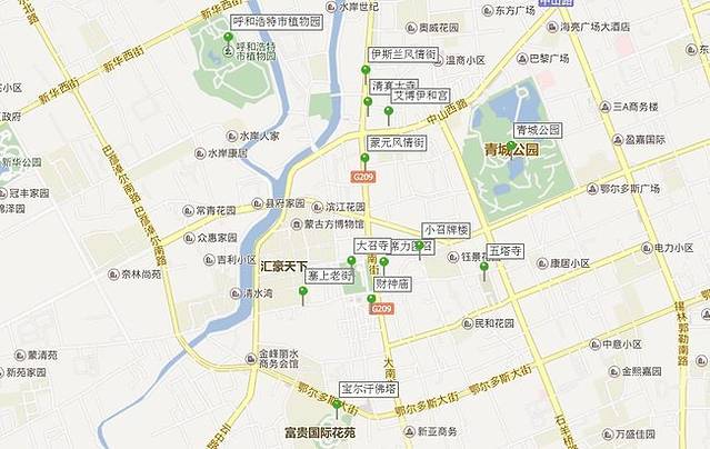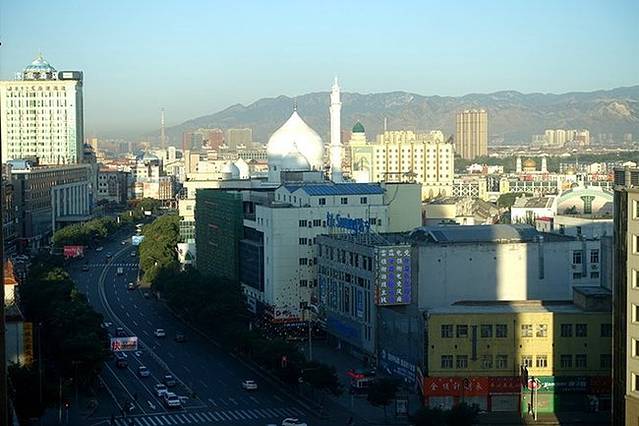 从高速出口一直向南就是伊斯兰风情街(浩特市回民区中山西路西面路口),这是在自治区成立60周年前夕专门进行改造的,俗语叫“穿衣戴帽”工程,全长约1100多米。在往南便是蒙元风情街(大北街),不过我们的宾馆在青城公园附近,所以在路口转到了中山西路。