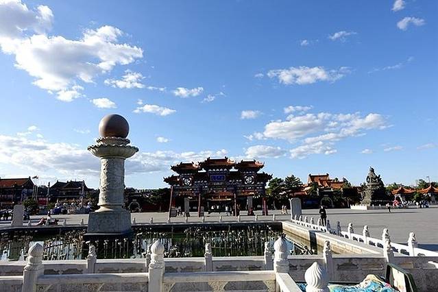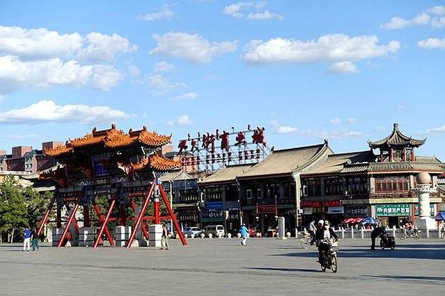 阿拉坦汗广场上的塞上老街和古玩城的入口
