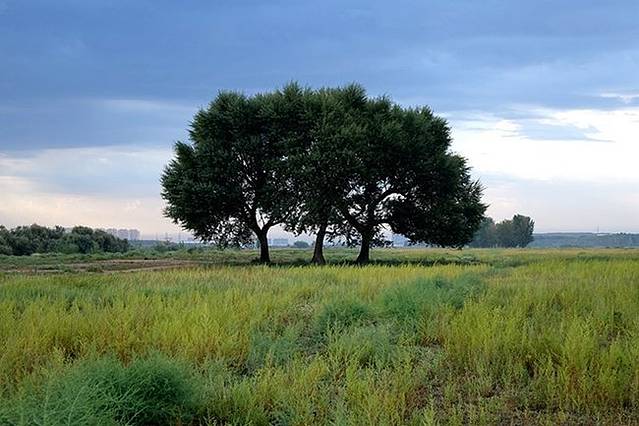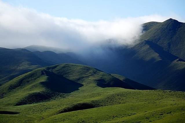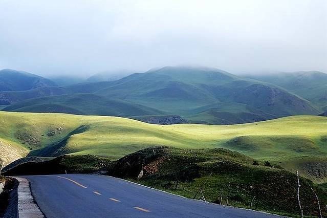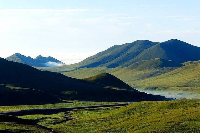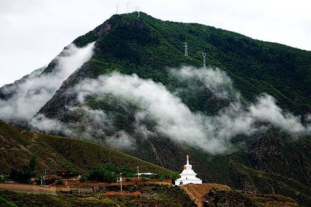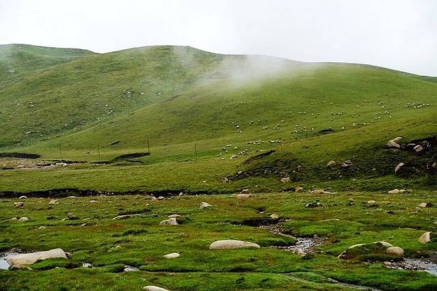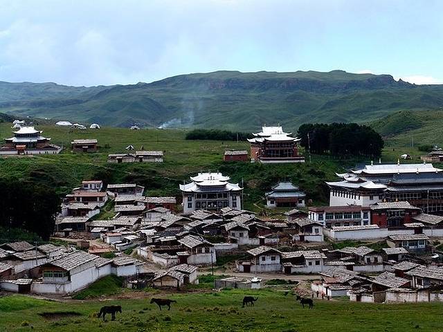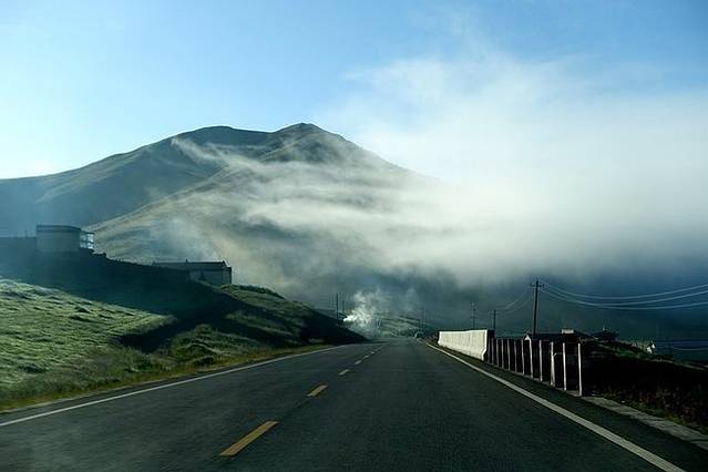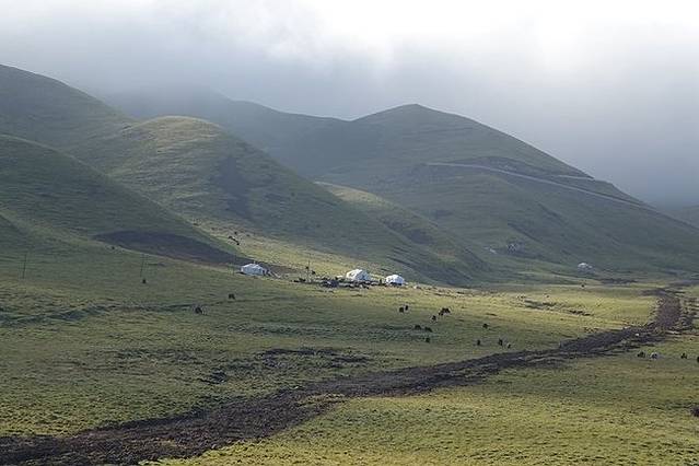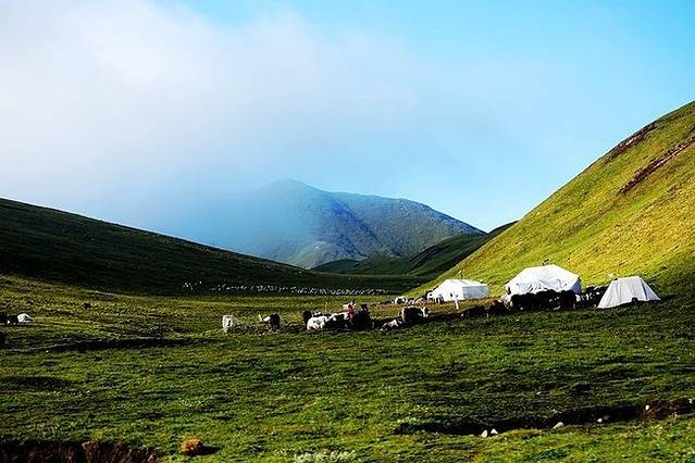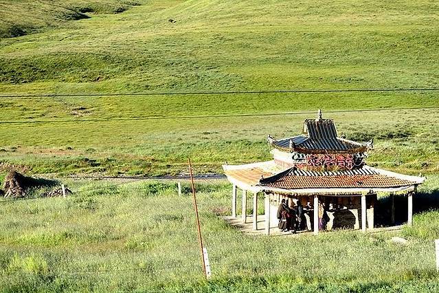 草原上竟然还有村落,简直是太幸福了呢。蓝天、白云、绿草都是他们的。