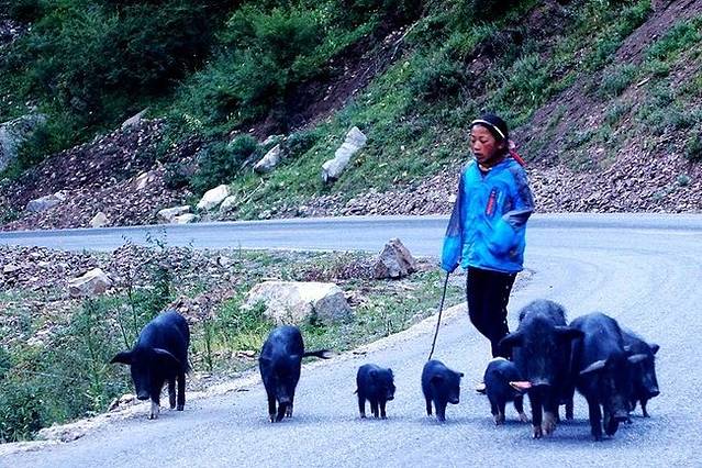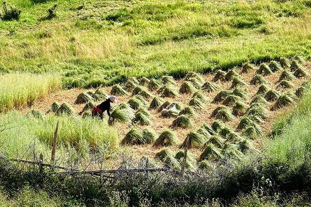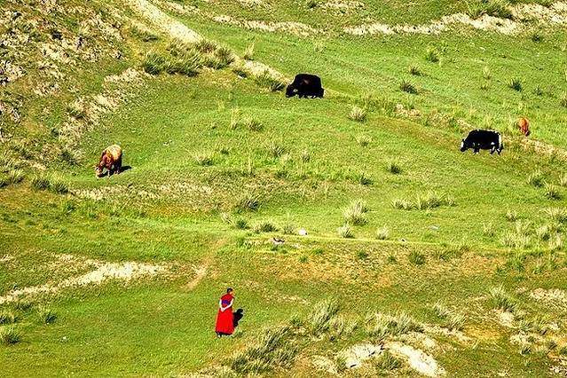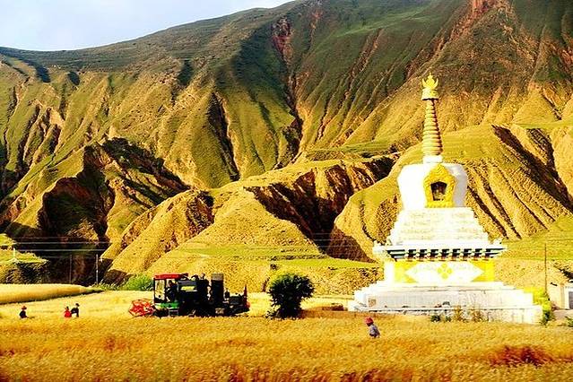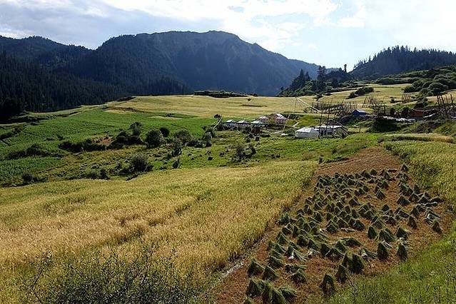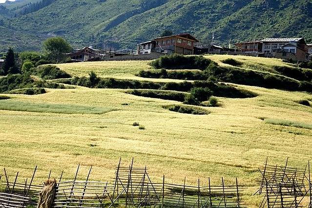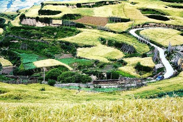 底下那些都是当地人中的青稞麦子吧?这色彩搭配起来也是漂亮的很啊!