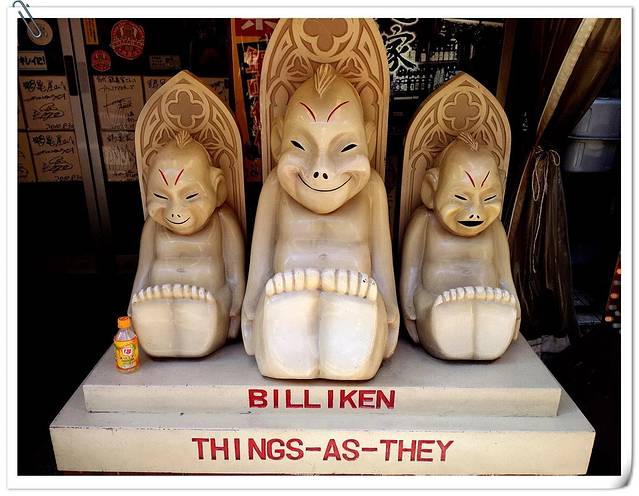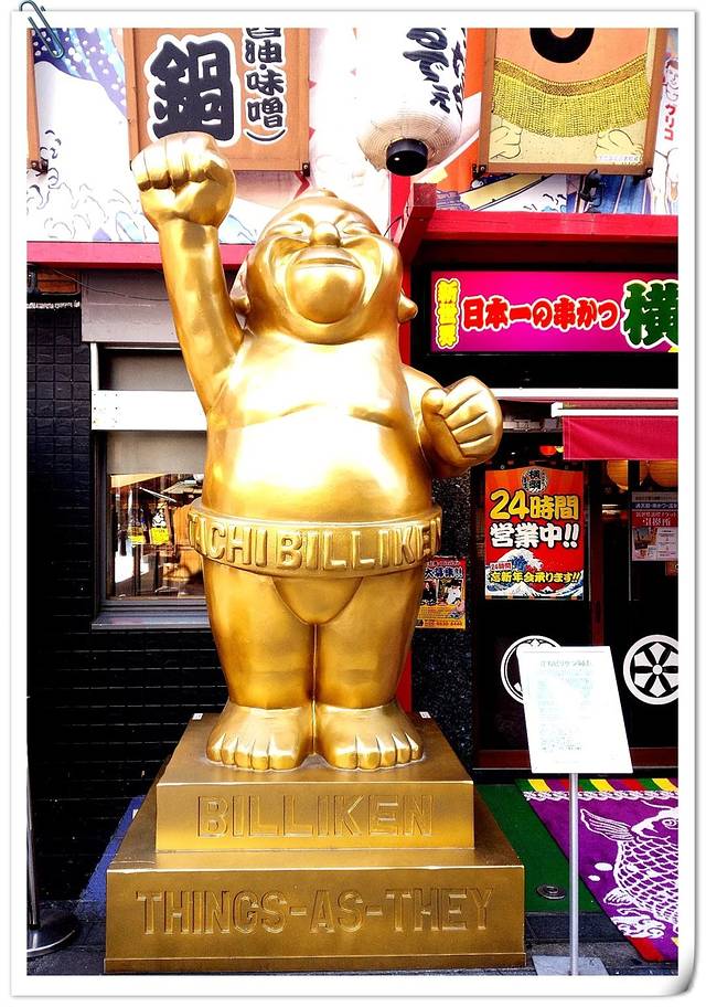 科普一下大阪通天阁的福神: BILLIKEN是美国画家Florence Pretz于1908年创造的人物,后来流行到日本,百年下来,如今许多日本人都误以为BILLIKEN是日本自己的产物。在日本,尤其大阪地区,BILLIKEN已经从一个普通的玩偶,晋升成为福神,大阪的商铺将他奉若神明,就连顾客也相信,去这样的商店消费才能买到足够幸运的物品。在大阪市区中心的公园里甚至有一座巨大的大阪福神BILLIKEN塑像,市民们相信它能为大阪祈福,让人心想事成。