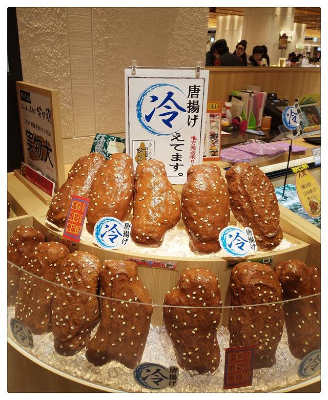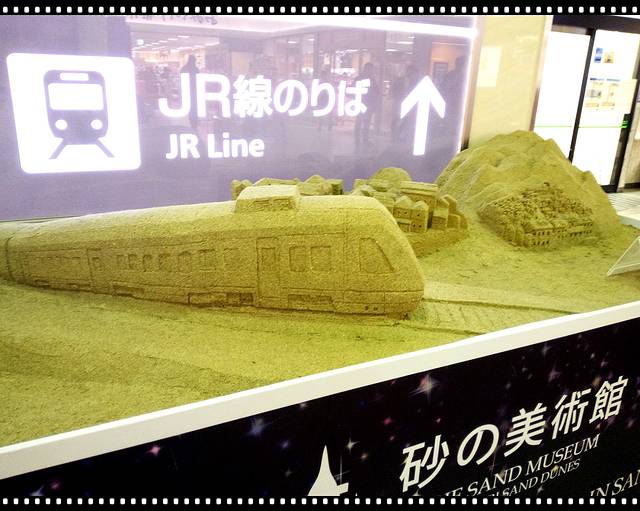 由良的班车回鸟取站比较少 所以在由良等了一个小时才有车回去。。。从鸟取站走出来 会看到砂之美术馆的一些砂艺术品 还有红色螃蟹造型的便当也可在鸟取站购买到 我当时太晚了便当卖光了 有幸见到便当造型 很可爱 从鸟取站出来后前面的大马路直走一段路 会看到一家居酒屋 鸡翅特别好吃 酱汁很秘制的赶脚 有图片下面可以看到 它在一家百元店的附近 反正离鸟取站不远 推荐一下给大家。