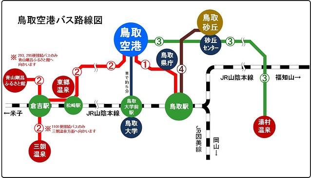 ① 空港~鳥取駅区間 連絡バス -----------鳥取駅まで約20分