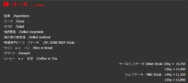 下面的图片是给大家的参考资料 我点的就是10765日元的神户牛肉套餐。