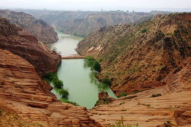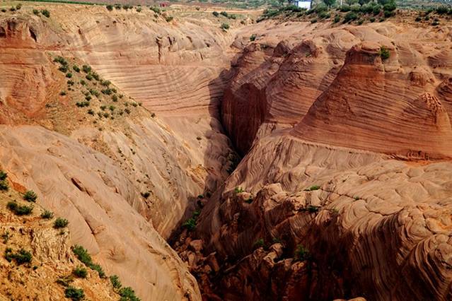 这里有一片跟靖边波浪谷地貌差不多的红沙岩