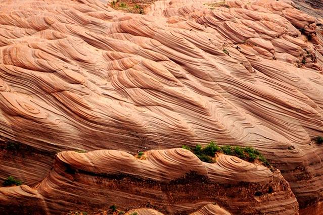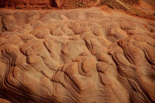 每一块砂岩上的纹理线条千变万化,有的像波浪、有的像流水、有的像螺旋,形态各异栩栩如生