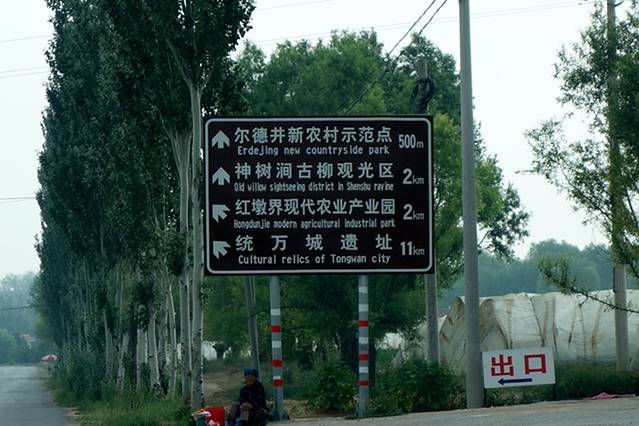去神树涧的指路牌,玩完后还要回到这里去统万城