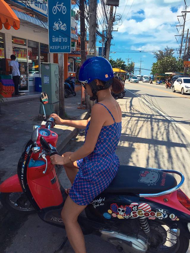 睡觉睡到自然起 起来在酒店租了摩托带上小头盔 骑摩托四处游荡