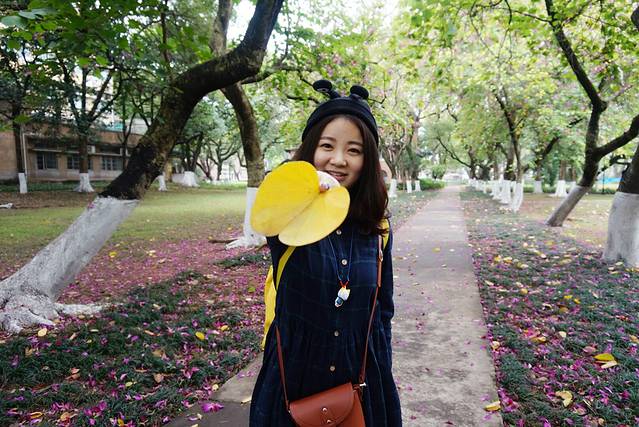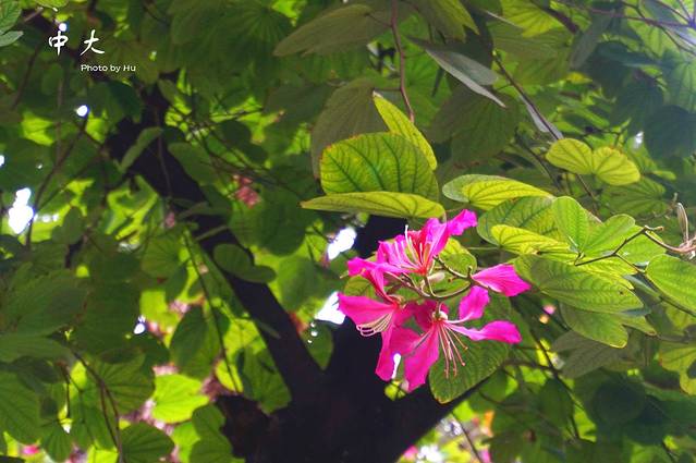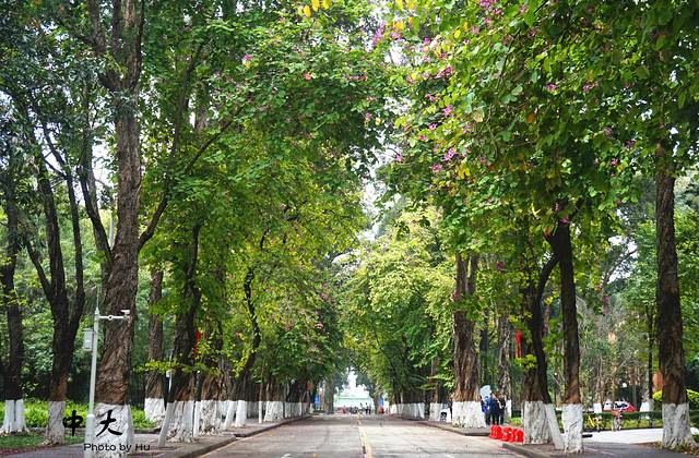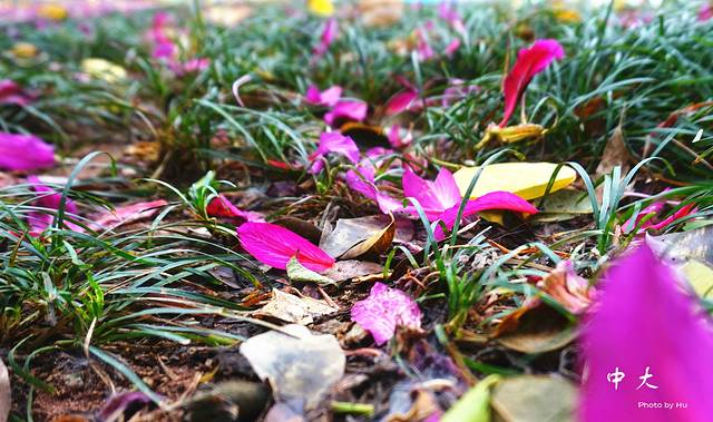 地铁直接有中大站,找到正大门往里走,就是林荫大道,这个不知道叫什么树,开粉色的大花~~~昨天下过雨的关系吧~散落一地~