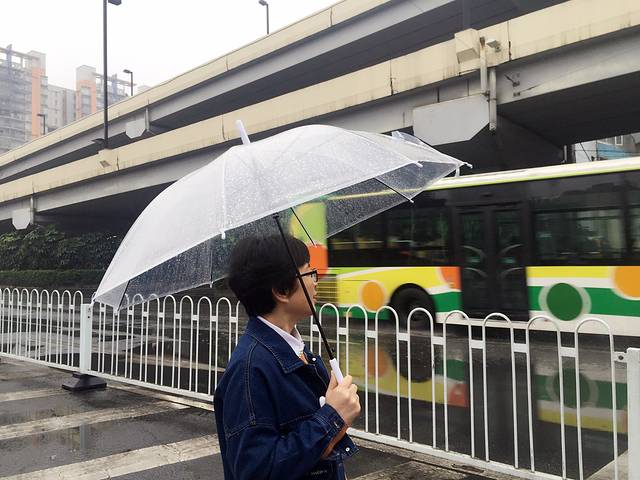 结果,地铁里嘚瑟的太久,出门看见大雨滂沱,算不算出师不利啊,直接在地铁站的小店入了两把透明伞,我妈打伞的样子看上去像不像高中生!