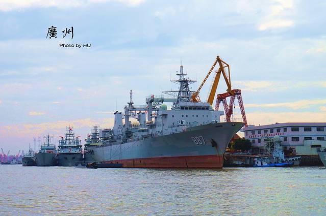 摆渡的时间大概也就七八分钟,两边可以看看港口的景色,快到黄埔码头的一边,有好多军舰~~