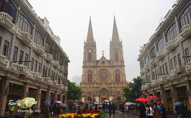 今日景点的最后一站,广州的地标之一——石室圣心大教堂!雨越来越大~~ 没有阳光照耀的教堂总是欠缺一些,雾蒙蒙的