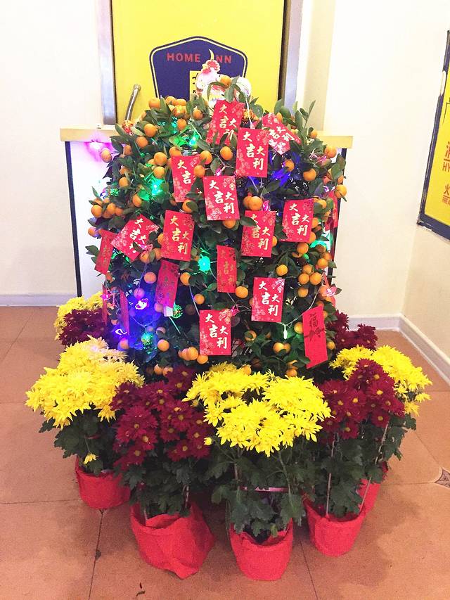 如家也在进门显眼的位置摆出了经典“橘+菊”造型