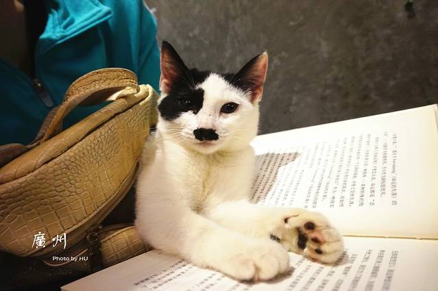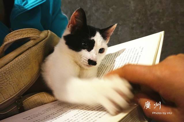 一进门这只可爱的小猫便把我们俩的勾走了,这是一位女读者装在包包里带来的,她坐在楼梯上看书,让猫咪把脑袋探出来,超级可耐呢!镜头感很足的让我抓到了一张