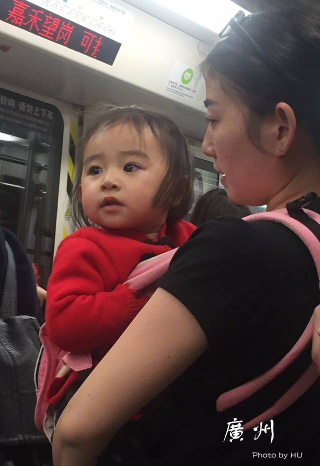好吧,车厢里对面坐着的黑人倒是让我想起了广东比较严重的“黑人问题”,但下一秒这个可爱的小女孩,就吸引了我的注意力。年轻妈妈居然直接短袖上阵,让我们里三件外三件的人情何以堪啊