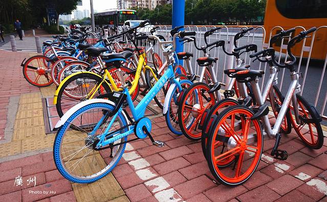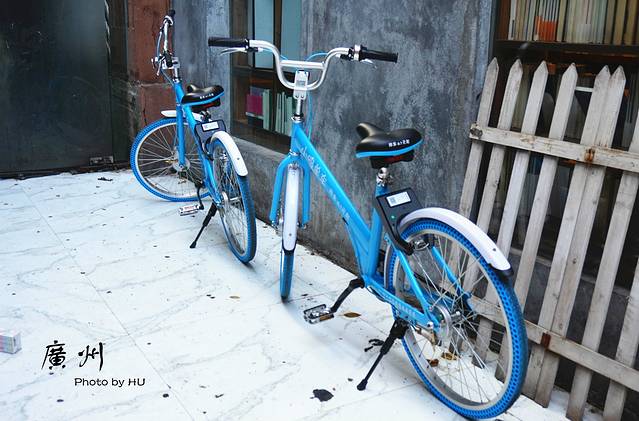 广州电瓶车也不多见,反而有很多各色各样的自行车租赁,扫一扫五毛钱骑车啦,我们已经试过啦~