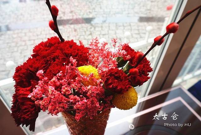 这样的浪漫小屋,居然也少不了红花腊梅的喜气洋洋啊
