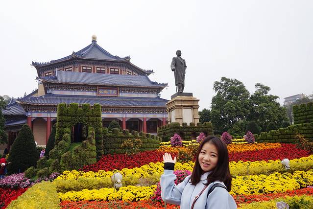 嗨~又是新的一天,今儿阳光正好~!第一站美美的中山大学。每走一城,一定会去他们的大学看看~~这种打卡,也算是一种情节吧~ 可是为什么大学门口也要放“橘+菊”造型。。。。。。
