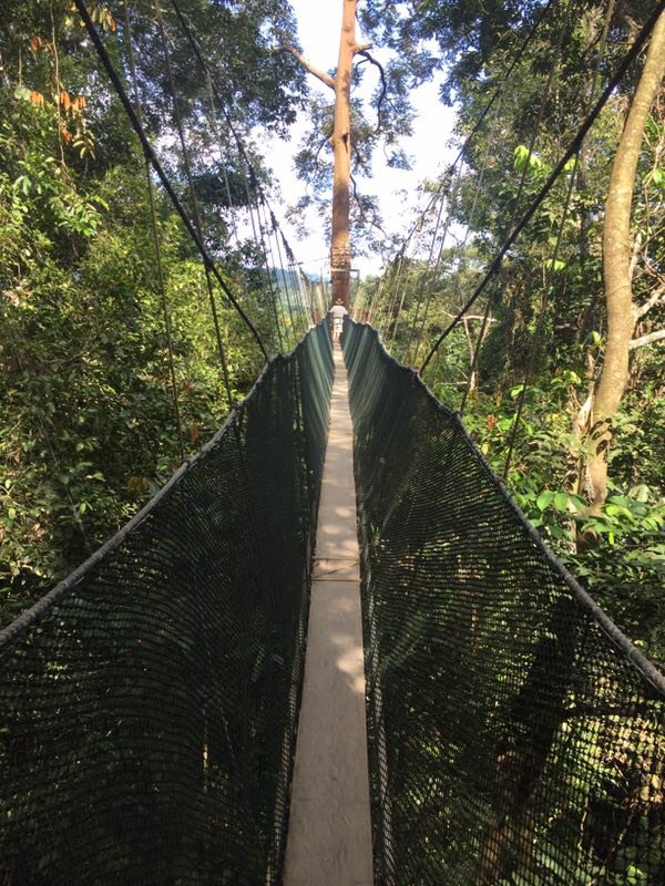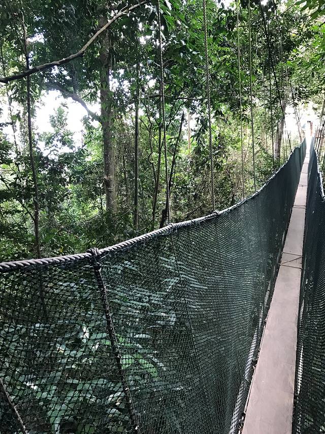 下山后乘车前往热带雨林公园,登山顶,走吊桥
