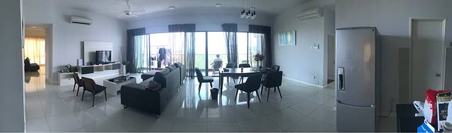 飞行3个小时,到达后直奔酒店放行李先,这次是6人家庭团,为了大家在一起更热闹,晚上可以随时嘎起跑得快,就定在imago商场楼上的loft,4室2厅3卫,海景房,超大客厅,海景阳台,有洗衣机,冰箱,可以自己做饭。
